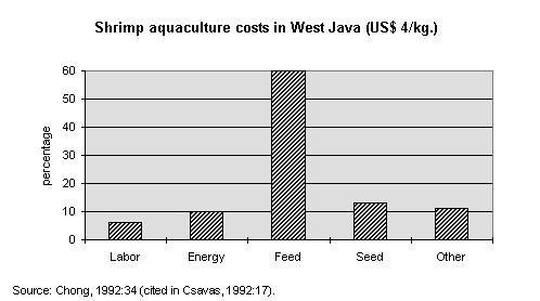 operating costs in intensive shrimp farming (Chong, 1992) compared with about 30 to 40 per