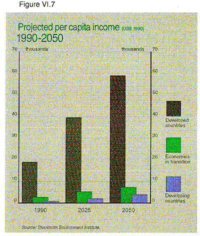 I. DEVELOPMENT AND ENVIRONMENT: FROM STOCKHOLM TO RIO Introduction1. The past 25 years have witnessed major changes in the way the issues of economic growth, human development and environmental protection are approached. Two international conferences serve as landmarks. The United Nations Conference on the Human Environment, held at Stockholm in 1972, was the first major discussion of environmental issues at the international level. The agenda was immense, touching on virtually all aspects of natural resource use, but the focus (reflecting the concerns of the developed countries which proposed the Conference) was on the threat to the natural environment posed by economic growth and industrial pollution. Developing countries, for whom these problems were still largely irrelevant, argued that poverty posed a greater threat to both human welfare and the environment, and that economic growth in their case was not the problem but the solution. Stockholm thus marked a polarization between the priorities of economic growth and environmental protection which has dominated the debate between rich and poor countries, and between interest groups within countries, for many years and is still not fully resolved. 2. During the 1980s, a new political and developmental paradigm emerged which appeared to reconcile these conflicting objectives. In 1987, the World Commission on Environment and Development published its report Our Common Future, better known as the Brundtland Report. The report set out the concept of "sustainable development", an integrated approach to policy- and decision-making in which environmental protection and long-term economic growth are seen not as incompatible but as complementary, indeed mutually dependent: solving environmental problems requires resources which only economic growth can provide, while economic growth will falter if human health and natural resources are damaged by environmental degradation. 3. Publication of the Brundtland Report set in motion a process which culminated in the United Nations Conference on Environment and Development (UNCED), held at Rio de Janeiro in 1992. A comparison of the action plans produced by the Stockholm and Rio Conferences illustrates a major shift in our understanding of, and approach to, the problems of long-term human development. Where Stockholm adopted an issue-oriented approach to pollution and non-renewable resource depletion, Rio emphasized integrated strategies to promote human development through economic growth based on sustainable management of the natural resource base. The UNCED action plan, Agenda 21, thus reaffirmed the Brundtland Report's central message: socio-economic development and environmental protection are intimately linked and effective policy-making must tackle them together. 4. This complex agenda, and the message of policy integration, have become widely accepted in the years since Rio, though integration remains a difficult concept to implement. Policy objectives in key areas can and do conflict and means of reconciling different interests and achieving acceptable trade-offs remain underdeveloped. The challenge facing policy makers over the coming years will be to identify critical issues in domestic and international development, and to prioritize measures according to the severity of the problem and the time required for policy to take effect. Critical trends, past and future ... 5. The present report examines some critical issues of sustainable development, reviewing developments over the past 25 years and looking into the future with the help of model-based projections and scenarios (see box 1). The issues under consideration have been chosen to reflect the widely accepted "pressure-state-response" framework used in much integrated environmental analysis. Population growth (chap. II) in recent decades has increased the overall pressure on the natural resource base. However, greater environmental pressure appears to be exerted by the level and patterns of production and consumption of modern industrial economies. Agenda 21 states that energy and materials use (chap. III) in the developed world is the leading cause of global environmental degradation. The consequences of recent trends in population growth and consumption are potentially most serious when they lead to damage to the natural resources of land (chap. IV) and water (chap. V). Land supports the livelihood of over half the world's population and provides most of the global food supply. Fresh water is indispensable to all life forms and is an essential input to economic activity, especially agriculture. Society's response to trends in these key issues, and their interactions, may be measured in terms of human development (chap. VI) - that is, the extent to which people enjoy adequate income, health, education and other, more intangible, goods such as freedom of choice and personal dignity. ... and the role of policy 6. The focus throughout the report is on the role of policy. To what extent have trends in economic growth, consumption patterns and environmental degradation been influenced by policy intervention? Which policies have proved beneficial and which detrimental? Given the lessons of the past, and the likely shape of things to come (based on the best available projections), what appear to be the most urgent priorities in different regions of the world, and the most promising policy approaches? 7. Any evaluation of trends and the role of policy must take account of the constraints under which Governments operate. The world is becoming increasingly integrated in its commercial and financial activities, while modern means of travel and communications are breaking down many of the traditional physical and cultural barriers between States. National Governments have little control over the forces of globalization and it seems likely that new international bodies, or institutional reforms, will be required to deal with emerging global issues i