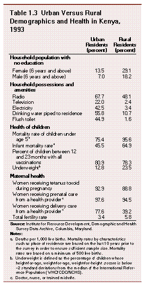 Cities are growing because they provide, on average, greater social and economic benefits than do rural areas. (See Table 1.3.) The higher capital investment caused by urbanization brings health and social benefits that could be achieved in rural areas only at far greater costs. The data are sparse and not always reliable, but access to drinking water, sanitation, health services, and educational opportunities is often dramatically higher in urban areas overall than in rural areas. As a result, life expectancy is usually significantly higher and infant mortality significantly lower in urban areas overall than in rural areas (39) (40). These benefits, however, often do not extend to the poorest groups within a city, as is described below.