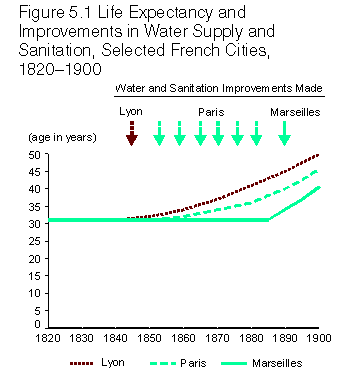 World Resources 1996-97 (A joint publication by The World Resource Institute, The United Nations Environment Programme, The United Nations Development Programme, and the World Bank) (Data edited by Dr. Róbinson Rojas) 5. Urban Priorities for Action PRIORITIES FOR ACTION: WATER AND SANITATION Cities across the globe confront problems related to water supply and use. For many cities of the developing world, the top environmental priority remains improving access to clean water and sanitation. As the World Bank concluded in 1992, doing so would be the single most effective means of alleviating human distress (4). When services were improved in cities in developed countries in the 19th and 20th Centuries, health improved dramatically. (See Figure 5.1.) In both the developing and the developed world, there is also a critical need to use water more efficiently and to intensify efforts to stop the deterioration of aquatic environments caused by municipal and industrial effluents. Improving Access to Water and Sanitation Despite nearly $100 billion in investments, the International Drinking Water and Sanitation Decade of the 1980s fell far short of meeting its goal of water and sanitation for all (5). During the decade, the number of urban people in the developing world with access to adequate water increased by about 80 percent, and the number of urban people with adequate sanitation facilities increased by about 50 percent. The rapid rise in urban populations offsets these gains, however, and in 1994 more than 220 million urban dwellers (13 percent of the developing world's urban population)still did not have access to a safe and reliable water source, while more than 420 million (25 percent of the developing world's urban population)did not have access to sanitation services (6). Although the Decade did not meet its goals, it did bring into focus the magnitude of the health problems associated with inadequate water and sanitation services and highlight the need to find new strategies to improve coverage. Indeed, the program's greatest achievement, by some counts, may have been the transformation in thinking that accompanied it (7) (8). Broadly, four key lessons emerged from the Decade: first, systems should respond to local demands and should be as simple, sturdy, and inexpensive as possible; second, the involvement of the community and households--particularly women--in system design and maintenance is a crucial component to a project's success; third, governments need to improve the efficiency and sustainability of system operation and maintenance; and fourth, water should be treated as an economic commodity paid for by users (9). Despite a surprising degree of consensus on these points, many governments and donor agencies have yet to move beyond rhetoric to implementation, according to some critics (10). Translating the lessons into practice poses many challenges (11). However, much progress is being made. Adopting Appropriate Technology and Standards The Decade made clear that the high-cost water and sanitation systems adopted throughout the developed world--with centralized systems built and maintained by subsidized public agencies--will not work in the developing world. The number of people unserved is far too great, and city coffers far too small, to provide all residents with piped water and flush toilets in their houses. Whereas some parts of a city, such as the urban core, may be covered by conventional sewerage, other areas, particularly low- income settlements on the urban periphery, would be much better served by lower-cost alternatives (12). Evidence of the success of low-cost solutions can be found in cities around the world, from large-scale programs for pour-flush latrines or ventilated improved pit latrines to community groups implementing small-bore sewer schemes. Each solution is unique, tailored to local conditions and needs, but most rely on locally manufactured hardware (e.g., plumbing, sanitary sheds, or concrete caps for pit latrines)and the efforts of community members to install, maintain, and manage the systems (13). Systems using lower-level standard technologies can be effective and much less expensive, at only one tenth to one twentieth of the cost of a conventional sewage system. Most of the lowest-cost systems require far less water, and once they are installed can be upgraded gradually (14). One of the greatest barriers to installing low-cost alternatives is political opposition to what is considered "low technology." In many developing countries, there is still a tendency on the part of governments and funding agencies to insist on standards that are higher than necessary, sometimes doubling the cost of service delivery (15). In Cartagena, Colombia, for example, officials proposed a conventional sewage system even though a high water table, impermeable soils, and land levels well below the city sewer mains caused pipes to sink and necessitated pumping wastewater uphill to city sewer mains. Once local officials were persuaded that the lower standards of technology were not "illegal," a system that uses a septic tank to remove biosolids and that transports liquid wastes in small-diameter pipes was installed at one third the cost of a conventional system. The system has been operating successfully for more than 10 years (16). Condominial sewers have also proved to be a cost-effective alternative, and versions have been installed in low-income neighborhoods in northeast Brazil, Pakistan, and Yemen (17). Condominial sewers use a radically different layout, with smaller and shallower feeder sewers running from toilet to toilet through each backyard. The wastewater of an entire block discharges into the main trunk line at a single point rather than having to connect each house to the main trunk. (See Figure 5.2.) The Orangi Pilot Project in Karachi, Pakistan, illustrates the successes possible with low-cost sanitation alternatives. The community adopted a sewage s