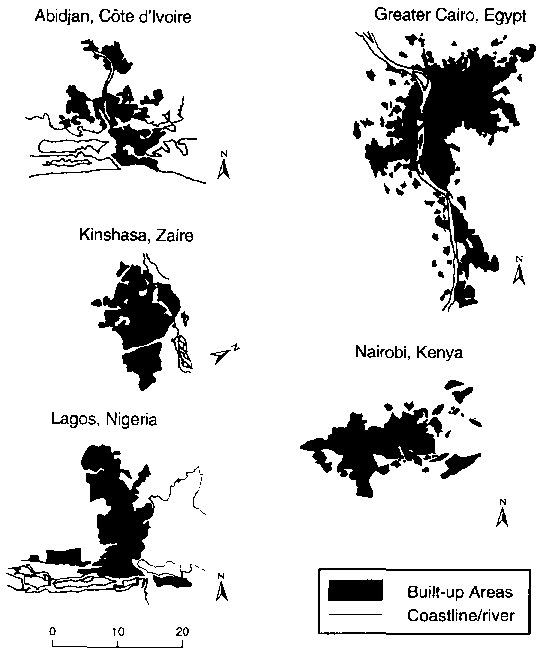 In Africa, it was clear that to adopt a definition of mega-cities based on size alone would be inappropriate, as at the time of writing only two African cities (Greater Cairo and the Pretoria-Witwatersrand-Vereeniging region centred on Johannesburg) had populations of over 8 million (fig. 1.1). A more nuanced approach to the selection of cities and design of a project that would address priority issues in the African context led to the adoption of a set of research objectives specifically designed for the purpose.